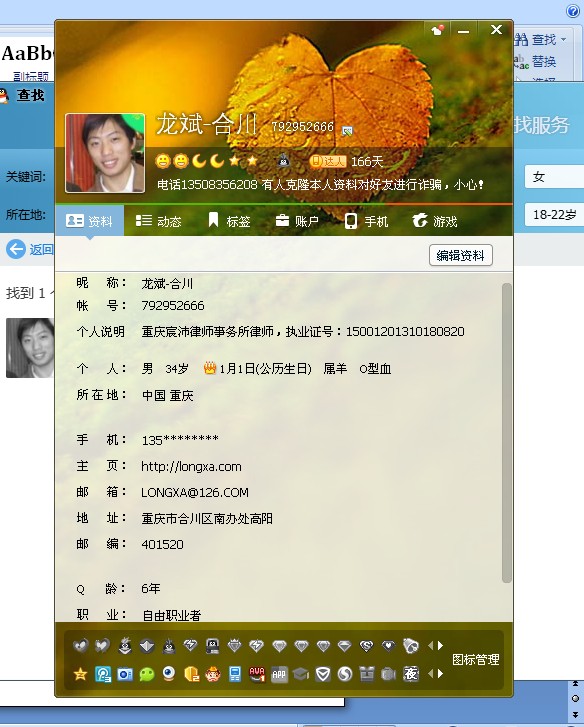 对此,本人严正声明:我从未以QQ形式向各位QQ好友进行借款,经本人通过技术手段查询,该行为系他人克隆本人QQ资料,特别是以重庆宸沛律师事务所专职律师的名义来担保借款,此类行为,纯属诈骗。请各位QQ好友不要相信,同时提醒各位QQ好友鉴别类似短信,提高警惕,严防上当受骗;如再有此类现象发生,请及时向我电话135********联系,也可以通过QQ.110.COM网站进行诈骗投诉登记。若有法律问题也可致电本律师事务所专线电话023-42732016进行预约登记。