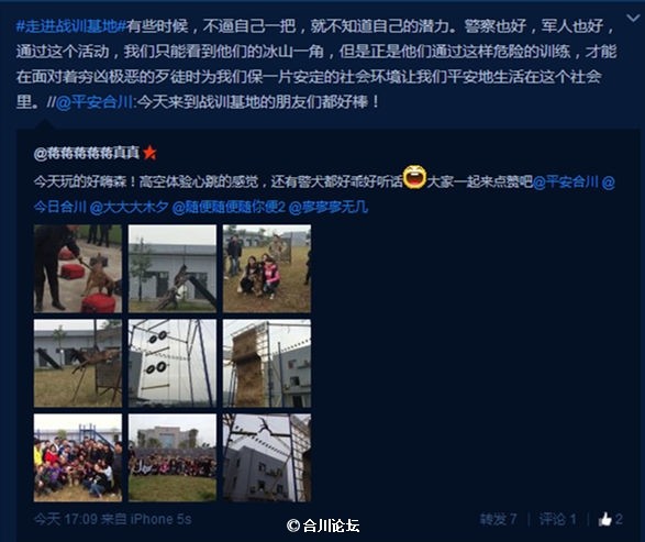 由“今日合川”、“平安合川”官方微博微信和今日合川网三家共同主办,合川区公安局负责承办的“圆梦警营”三江战训基地体验活动今天下午举行。![]() ![]() ![]() 这次活动“今日合川”官方微博、微信的报名人数近一百人,但只有这八位有幸参加了今天的体验活动。 首先,战训基地为大家献上了警犬搜寻毒品的表演。 ![]() 很快,警犬锁定装有毒品的箱子,引来全场掌声。 ![]() 刚破获11.10命案的警犬闪亮登场。 ![]() ![]() ![]() ![]() 粉丝与明星警犬的亲密接触。 ![]() 基地明星教官陈相大家还记得吗?10月27日我们的微信做过介绍,查看本微信历史消息可以看到。 http://mp.weixin.qq.com/s?__biz=MjM5MTM2NjI0MQ==&mid=201022178&idx=1&sn=67405d407503853cfa369308e356b8df#rd ![]() 陈相教官接下来带领大家开展民警训练体验活动,分组开始啦! ![]() ![]() ![]() ![]() ![]() 真正的挑战开始了。 ![]() ![]() ![]() ![]() ![]() ![]() ![]() ![]() ![]() ![]() ![]() ![]() ![]() ![]() ![]() ![]() ![]() ![]() ![]() ![]() ![]() ![]() ![]() ![]() ![]() ![]() ![]() ![]() 每一个粉丝今天都完成了对自己的挑战,他们在十米高空上不仅听到了自己的心跳,也切身感受到民警日常训练的辛苦。 小编很佩服今天参加活动的那些美女们,丝毫没有输给男士。 ![]() 粉丝分享今天体验活动的心得。 ![]() ![]() ![]() 最前排睡姿那位筒子,小编也是醉了...... 今天新浪微博粉丝“苏远以北”在参加完今天的活动后,发微博这样说到:“有些时候,不逼自己一把,就不知道自己的潜力。警察也好,军人也好,通过这个活动,我们只能看到他们的冰山一角,但是正是他们通过这样危险的训练,才能在面对着穷凶极恶的歹徒时为我们保一片安定的社会环境让我们平安地生活在这个社会里。” 相关链接: 三江民警战训基地占地130余亩,现已建成室内训练用房1.2万平方米、室外训练场2.1万平方米,功能布局合理,训练场地齐备,训练设施完善,现能满足一次性容纳220人脱产培训规模,硬件设施名列全市11个战训基地前茅,达到省级战训基地标准,目前正创全国民警心理健康服务示范中心(全国现有8个)和公安部实战训练基地(全国现有11个)。 其中,民警心理健康服务中心投资100余万元,面积达260余平方米,建有音乐放松室、体感宣泄室、虚拟沙盘室、击打呐喊宣泄室和心理测评室,配备了68台心理测评电脑和3台BW308脑波同步治疗按摩放松椅,装配了虚拟沙盘分析、呐喊宣泄放松、体感宣泄、阳光智能型身心反馈、公安民警心理训练等系统。 战训基地斥资100余万元建成面积达1000平方米的心理行为训练场,场内有心理行为训练高空组合器械和心理行为训练地面器械,可以同时开展高空和地面项目训练。高空训练项目包括:空中单杠、空中断桥、攀岩、天梯、软梯、速滑、速降、翘板桥、绳网、荡木桥、吊索桥、相互依存、丛林绳桥、梅花桥、独木桥、绝壁横墙等16个科目;地面训练项目有:四米墙、背摔台、同心同行、高桩平衡木、梅花桩、地面荡木桥、地面相互依存等7个训练项目。 (合川律师) |
