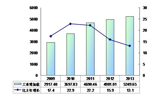 全年实现工业增加值5249.65亿元,比上年增长13.1%,占全市地区生产总值的41.5%。其中规模以上工业增加值增长13.6%。规模以上工业企业实现总产值15824.86亿元,同比增长14.5%。其中,大中型企业11288.89亿元,增长12.7%;国有控股企业4487.86亿元,增长10.8%。