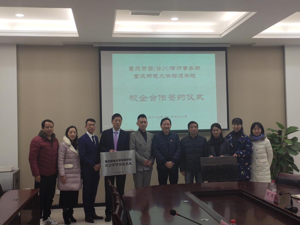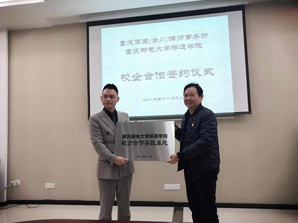 经过双方友好磋商,在外国语言文学系吴世银主任的主持下,张德民校长代表移通学院正式与重庆百君(合川)律师事务所签订了校企合作协议并举行了揭牌仪式。